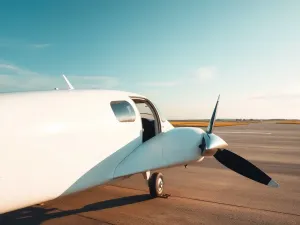 Mały biały samolot prywatny na słonecznym pasie startowym, symbolizujący tanią eksploatację i koszty latania prywatnie
